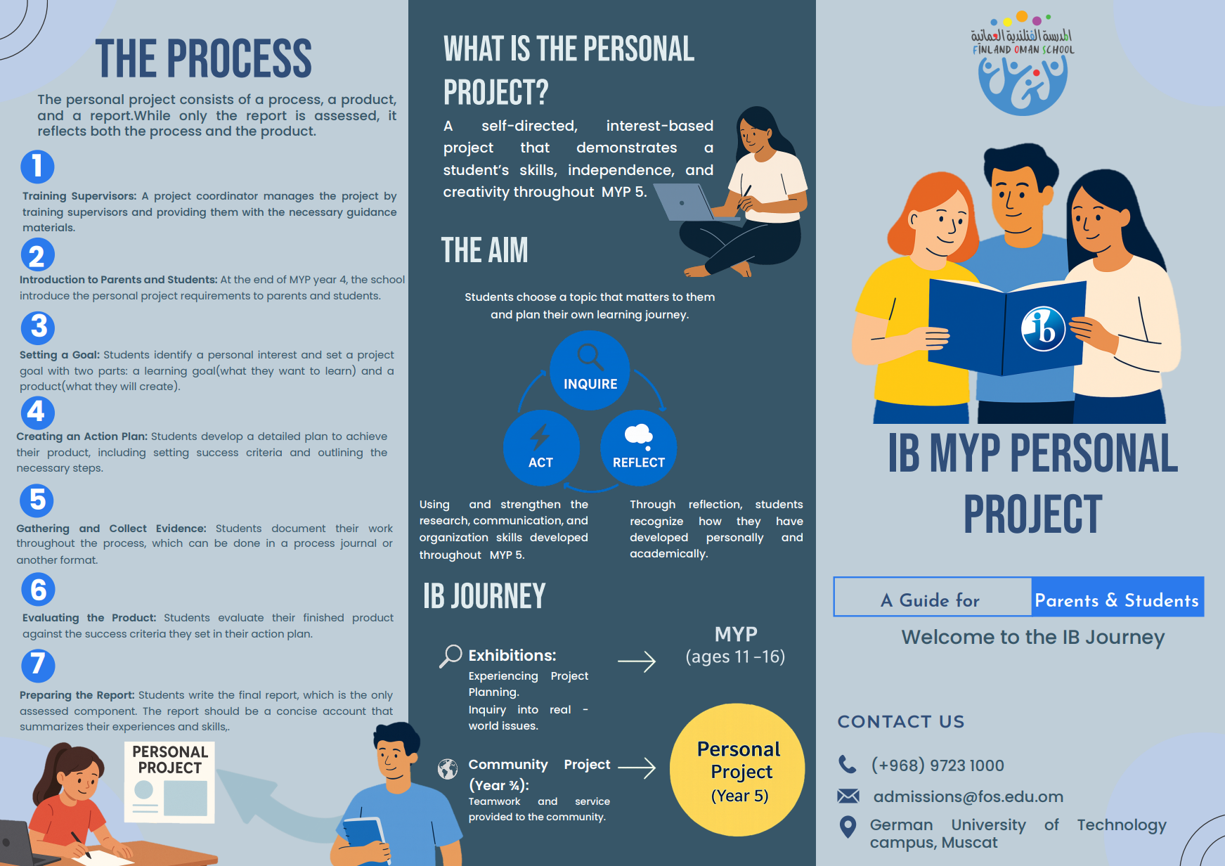 Since the last academic year, Finland Oman School has proudly implemented the International Baccalaureate Middle Years Programme (IB MYP). This globally recognized framework provides a balanced, inquiry-based education that develops students’ academic skills, personal growth, and global understanding. Our MYP curriculum is designed to meet the needs of both local and international students, offering a rich bilingual experience while preparing them for future studies and careers.